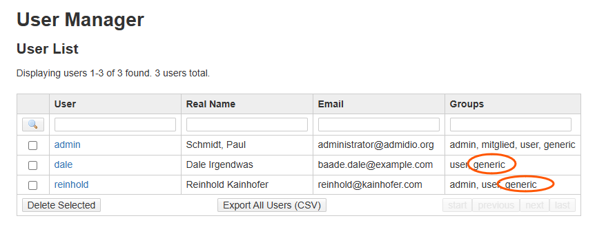 To use Admidio's group memberships as Dokuwiki groups, make sure to include the “Roles” field and provide the correct field name in Dokuwiki. DokuWiki even provides a setting to overwrite all groups with the groups received from Admidio.