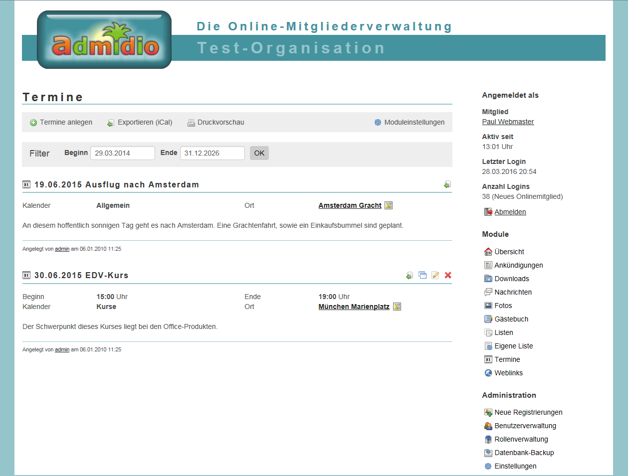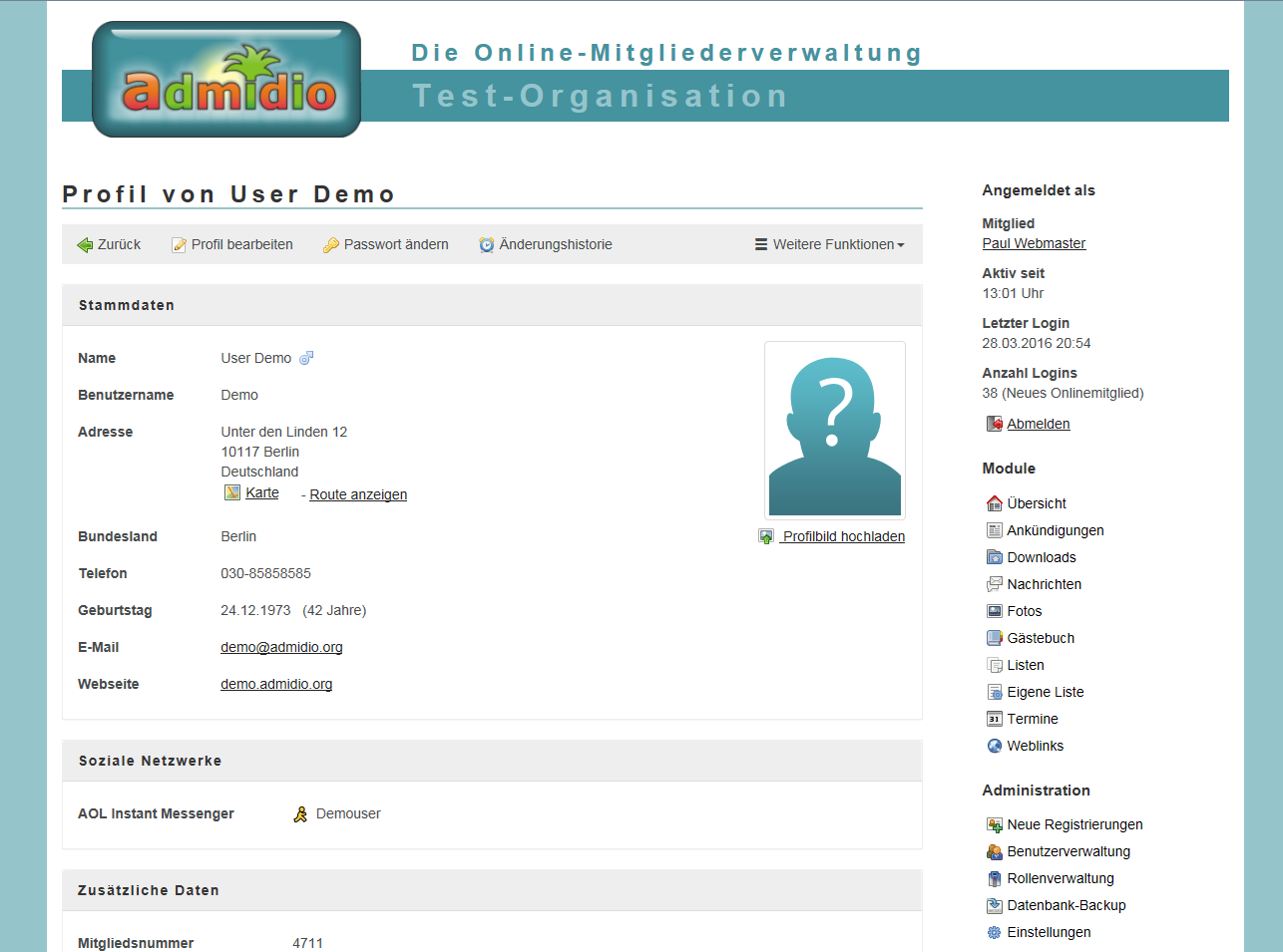 - v1.0.0 from 06.08.2015: compatible with Admidio 3.0 and 3.1
